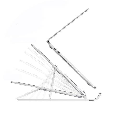 I really like how durable and simplistic this is. It weighs almost about nothing it comes in a cute gray pouch. There's no parts to assemble it's durable Its made of metal. You can use it for more than just your laptop. It works well with a tablet, a book, and I'm sure you can even use it for landscape mode for a phone, you don't have to open it all the way for it to work. It's very versatile and definitely a must-have for trying to ventilate a laptop and get a ton of more different types of uses at it while you're on the go or in the kitchen. Absolutely must buy!