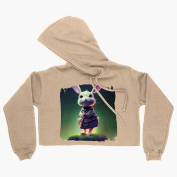 Anime Bunny Women’s Cropped Fleece Hoodie – Fantasy Cropped Hoodie for Women – Graphic Hooded Sweatshirt
