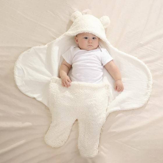 The cute white bear hoodie with a windproof cap design protecting the baby’s ears and keeping them warm stays warm all night. Designed with separate feet, it allows a baby to kick, but cannot be kicked off.