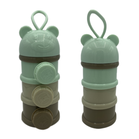 I struggled with the formula container for a long time and finally chose this container. I was very pleasantly surprised when I received it, and it was better and cheaper than I expected. I will order another set so that I can have two sets, one for powdered milk and one for small snacks. The top cap comes off and fits perfectly inside the bottle, so you won't spill the formula everywhere. They snap together tightly, so you can keep them in one place and stay connected.
