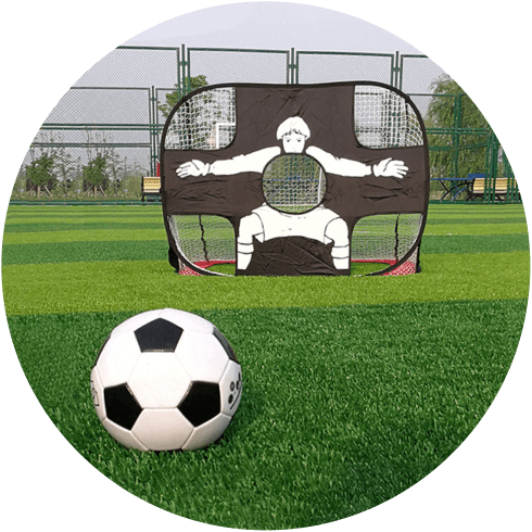 Done practicing those kicks? Flip the net down to the ground, and the practice goalie now becomes the tanding base for a real goalie.
