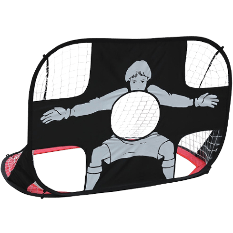 When set up, the net backing has a goalie print with a target hole to allow you to practice your kicks.