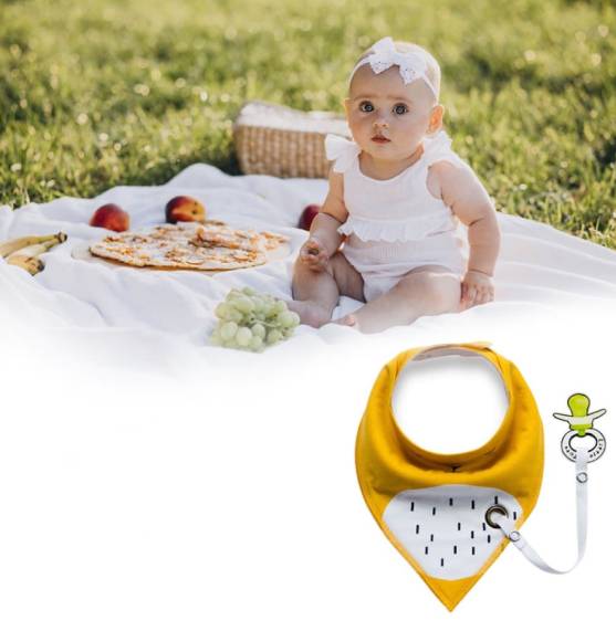 Crafted from absorptive cotton on the front with 100% polyester fleece on the back, our Cotton Baby Bibs with Pacifier Holder offer a bandana-like bib that’s stylish and extra soft for a pleasant wear and use.