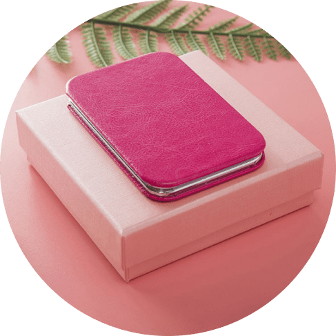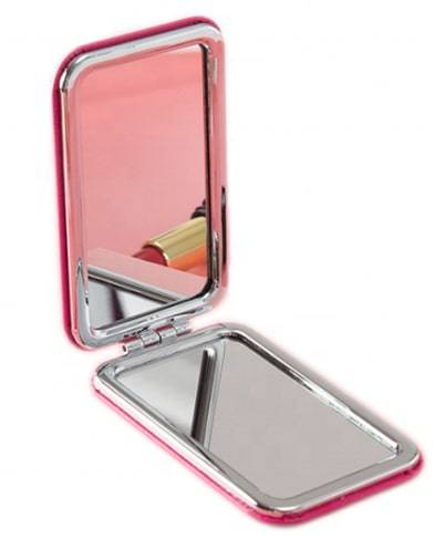 A pretty mirror for pink color lovers, compact enough to fit into a woman's purse. It is easy to open and close.