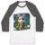 features raglan 3/4 sleeves and a modern fit that is perfect for a day