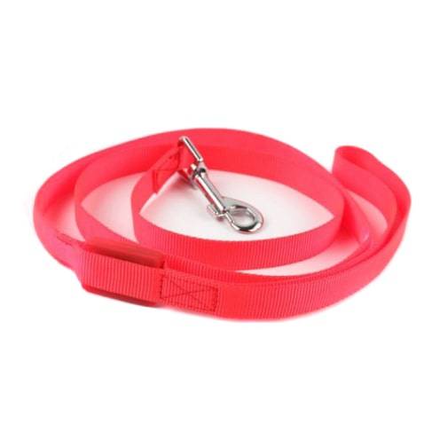 I bought two of these leashes; one for each of my dogs in neon orange and yellow. Both leashes look bright and vibrant during the day even when they're not turned on which I love. During the night, both colors (yellow and orange) are clearly visible - the yellow shines more of a green when turned on but i'm fine with that. I got many compliments on the leashes! It has a soft padding for your wrist and grip of the leash as well.