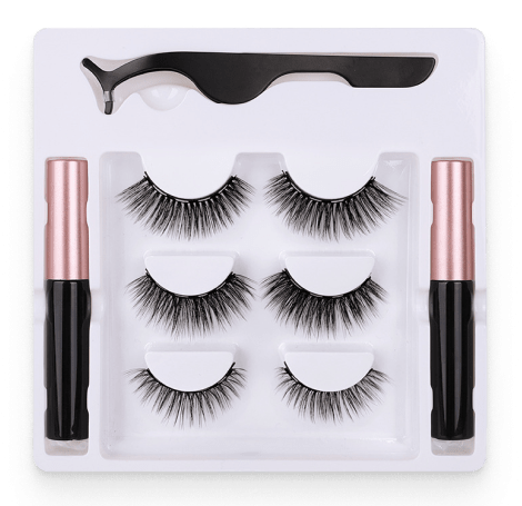 This set is a great buy. You get a great variety of lashes in different lengths and thicknesses, two tunes of liner and an applicator. The liner goes on easily as do the lashes. And they look great!!!