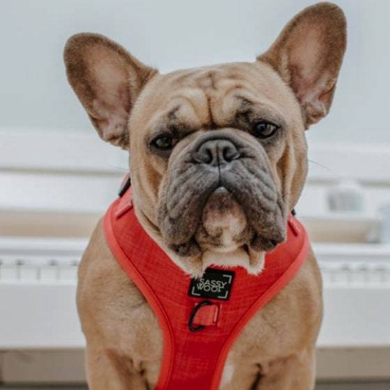 Love this harness! At least I think my dog does ... I will definitely be buying this again when he grows out of his large, if he does. Frenchies have sensitive backs!! For anyone who has a frenchie, dachshund, or other breed prone to back problems, this would be a great harness for them! And it is NOT recommended to walk dogs like this on collars! So get them a harness, preferably this one! Their backs will thank you for it :)
