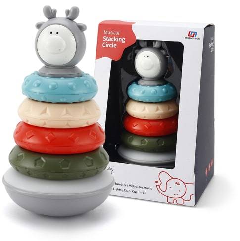 Traditional toys (like stacking toys) have been around for a long time. And that’s understandable. People wouldn’t use things that don’t work. But why should we stand still? Improving already existing goods is a great way to enjoy the benefits of traditions, but level them up even more. This toy is just like that. It’s a common toy with modern quirks that make it irresistible for modern kids. Put in the 3 AA batteries – and let your baby enjoy it!