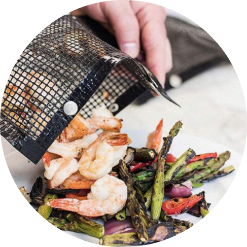 This non-stick grill mesh bag is so great! We bought it to use on our grill. Instead (for now!) we use these in our oven to roast veggies, and they work great! Nothing falls through, and the veggies roast evenly, without needing to be turned much since the bag has the tiny mesh holes. This is sturdy, well made, and my favorite part, dishwasher safe, and easy to clean!! I highly recommend!