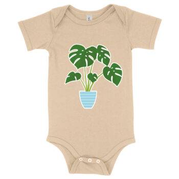 Monstera Baby Jersey Onesie – Print Baby Onesie – Potted Plant Baby One-Piece