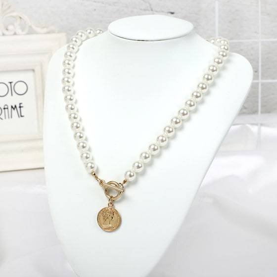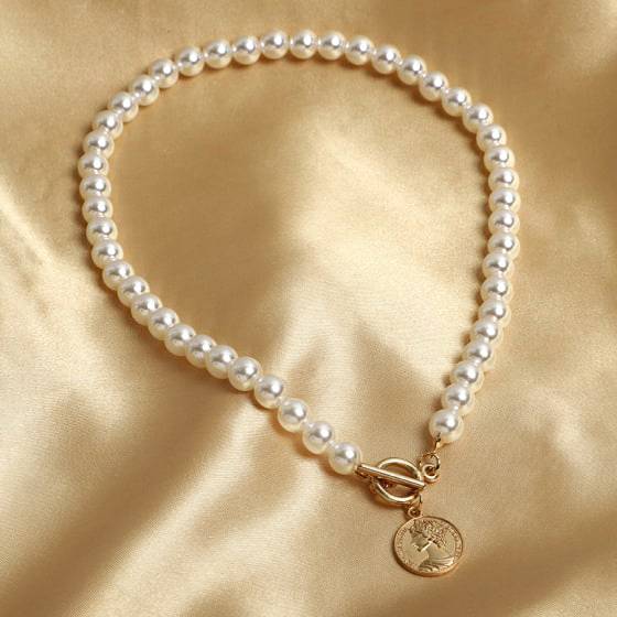 This was exactly what I was looking for. It fitted just below my collar bones and suited the neckline of my dress. The white pearls are of uniform size.