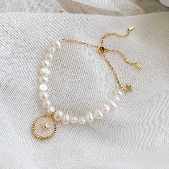 This bracelet is beautiful. The pearls have great sheen and luster. The color of the white pearls is perfect. These freshwater pearls are almost completely round. I highly recommend this brand of pearls. I will be purchasing more jewelry from this seller.