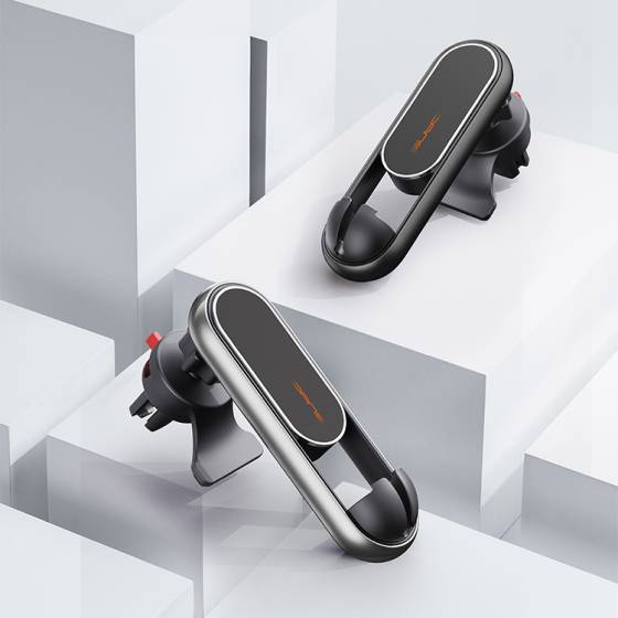 Our Sleek Magnetic Charge Phone Holder is made with ABS plastic and silicone cushioning on the air vent claws, for worry-free hold. A friction knob and safety lock also help customize your hold.