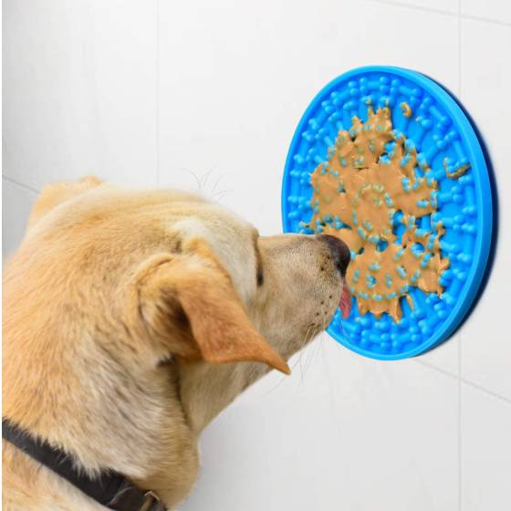 Dog loves it! It doesnt really distract him from a bath, but it does entertain him and gives him an outlet for his licking. The suction cups are a great feature even for on the floor. I bought a different lickimat that doesnt have the suction cups and it moves around too much and pup was able to pick it up and chew on it. Cant do that to this one as its stuck down to the surface. Only thing is that its not as easy to clean as they say its hard to get all the food out of the crevices. I used dishwasher but that was worse. I just scrub by hand w/ a toothbrush to get in all the tiny spaces. I will buy again!!