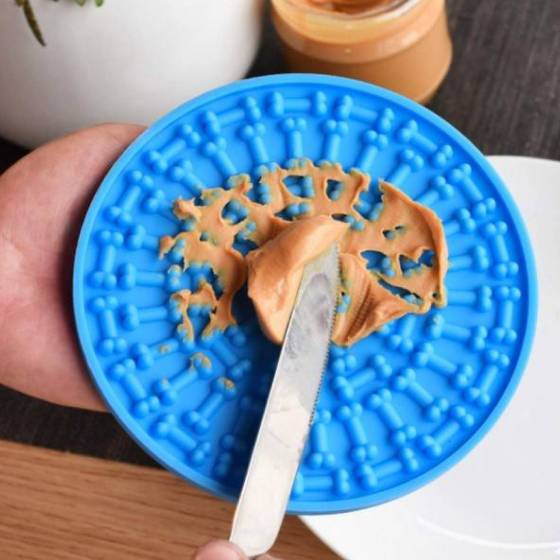 I just finished cutting and dremeling toenails on my three dogs with their total cooperation, thanks to this product. I just put squirt cheese in between the nubs of the slow treater, laid it on the grooming table, and the dogs were happily licking away while I worked on their feet. No pulling away, no second person to hold the dog, just me, some cheese, and the slow treater. I’m a fan!!!