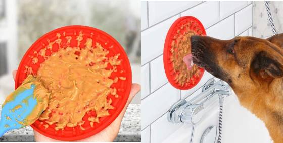 Bathing and grooming my five month old Alaskan malamute/husky has always been a bit of a struggle. The sight of the nail clippers, and grooming brush were enough to send her running. I can honestly say that the slow treater has been a total game changer when it comes to bath-time & grooming. It’s simply amazing how a single tablespoon of peanut butter spread into the slow treater can keep my pup so distracted that I’m able to fully wash, dry, brush, and clip her nails without her even noticing!!!