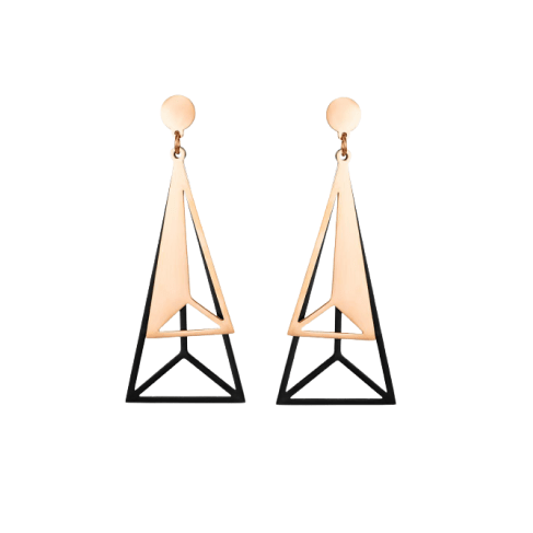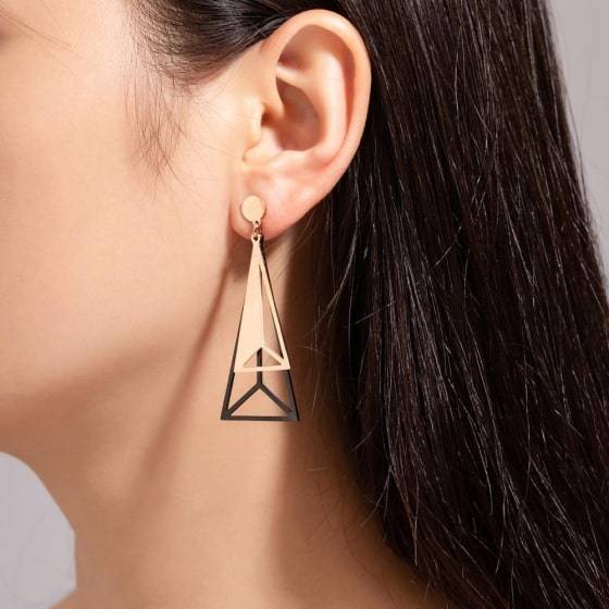 Wanted a dangling earring that wasn't a hoop or just a strand of something. Saw these in black and they fit the bill. In person, they're super cool too. They feel stable, I've worn them several times and haven't worried about the triangle falling off the flat base. The back fits a little tight but after a minute I don't notice. Love the look of these, would definitely recommend.