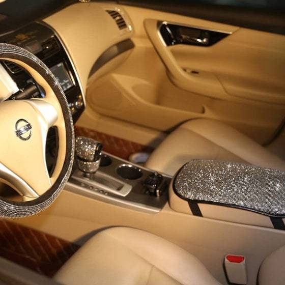 Our White Bling Rhinestone Center Console Cover is perfect for that special lady (or girl) in your life. It makes a great gift for a birthday or special occasion (new car, anyone?).